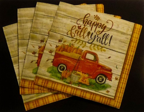 4pc Pumkin Truck Fall Thanksgiving Luncheon 13 X 13 Decoupage Primitive Ebay